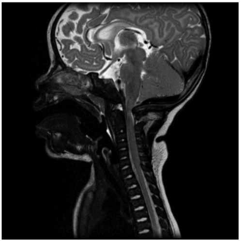 Figure 3. Foramen magnum stenosis with significant compression of the cervicomedullary junction. Gaillard F, Walizai T, Ranchod A, et al. Achondroplasia. Reference article, Radiopaedia.org. Accessed on 24 Sep 2025. Link