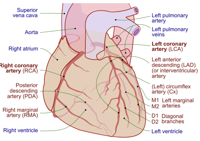 - Ogobuiro I, Wehrle CJ, Tuma F. Anatomy, thorax, heart, coronary arteries. In: StatPearls [Internet]. Treasure Island (FL): StatPearls Publishing; 2022. PubMed