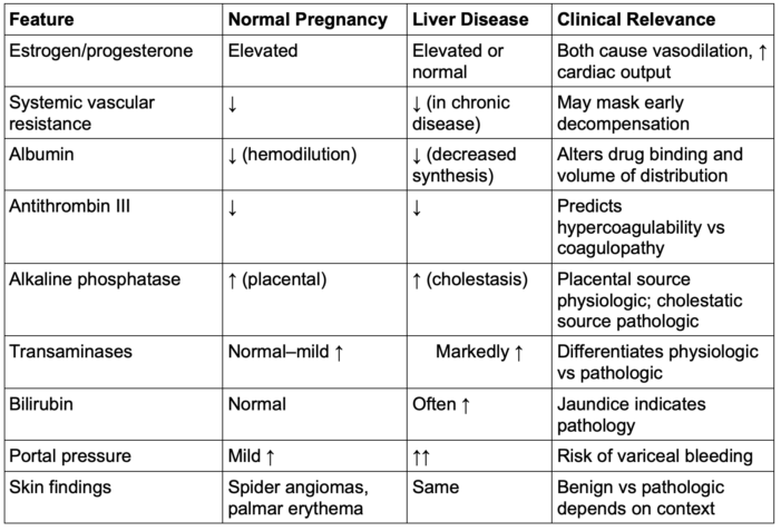 - Pregnancy and liver dysfunction share overlapping physiologic features (e.g., elevated estrogen, hyperdynamic circulation, mild cholestasis), which can complicate diagnosis.