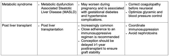 - Multidisciplinary care (obstetrics, hepatology, anesthesia) is essential, especially in women with cirrhosis or portal hypertension, who are at risk for variceal bleeding (up to 25%).4