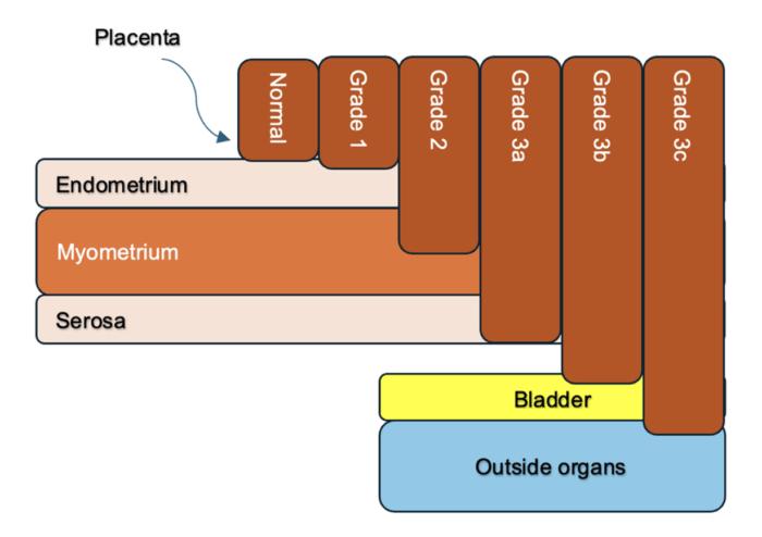 - Grade 3: abnormally invasive placenta through the entire uterine wall (percreta)