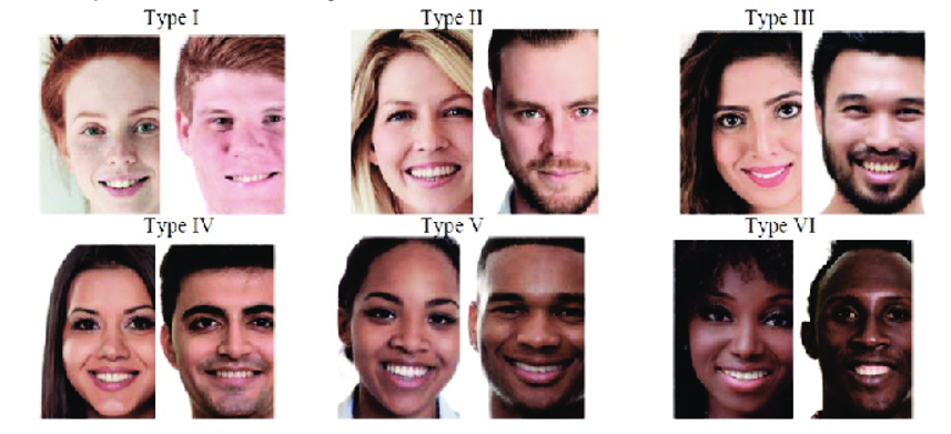 Figure 4. The Fitzpatrick scale. Source: Mathew, Joshua, Tian, et al. Fitzpatrick Skin Types [figure]. In: Description of the Six Skin Types Known as the Fitzpatrick Skin Type Classification. ResearchGate. Link