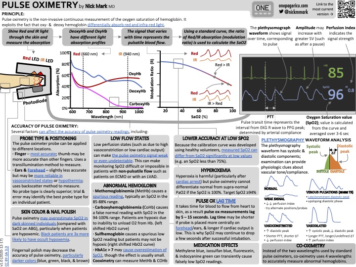 Figure 1. Pulse oximetry mechanics. Source: Mark N. Pulse Oximetry [infographic]. OnePager ICU. December 17, 2020. Link