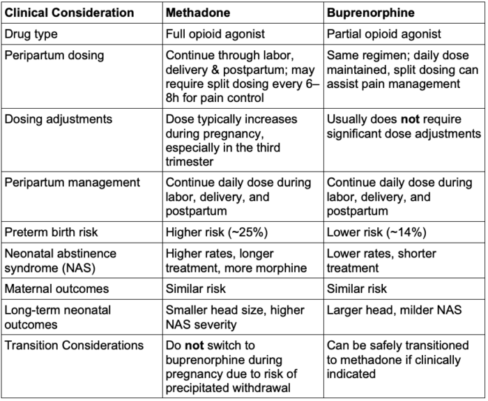 Comparison of Methadone vs Buprenorphine in Pregnancy