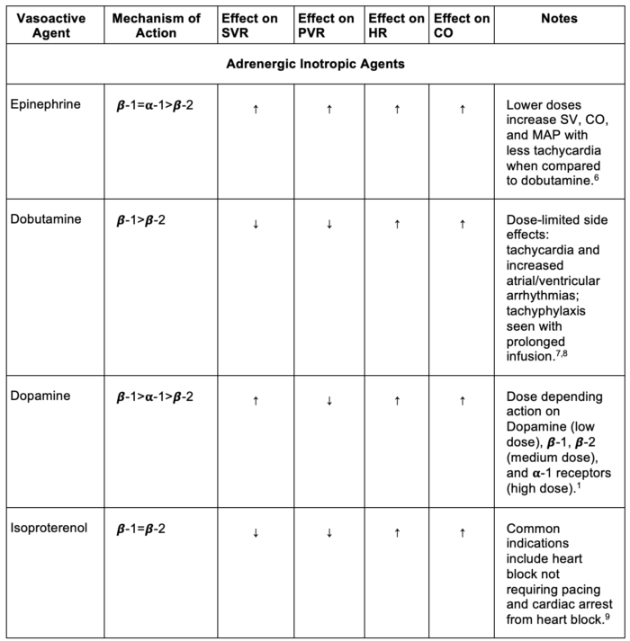 - Jentzer JC, Coons JC, Link CB, Schmidhofer M. Pharmacotherapy update on the use of vasopressors and inotropes in the intensive care unit. J Cardiovasc Pharmacol Ther. 2015;20(3):249-260. PubMed