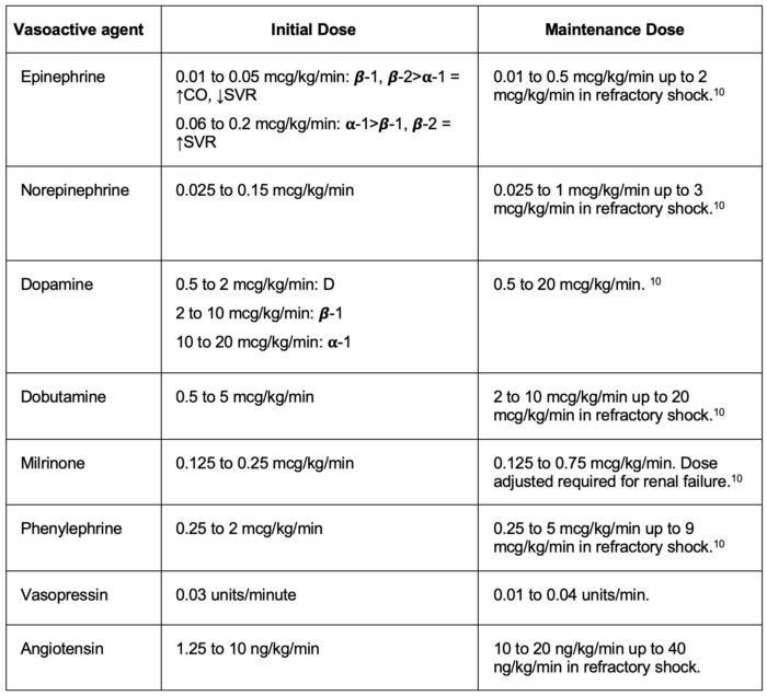 Vasopressors and Inotropes: Overview and Selection of Agents