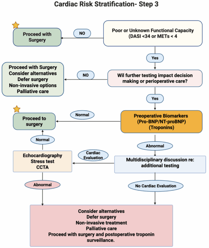 Figure 3. Further evaluation and risk stratification based on functional capacity. Created in BioRender. Mohamed, B. (2025) Link