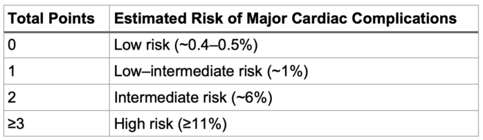 - To evaluate the likelihood of perioperative cardiac adverse events, several risk stratification indices have been developed and validated using large observational data.